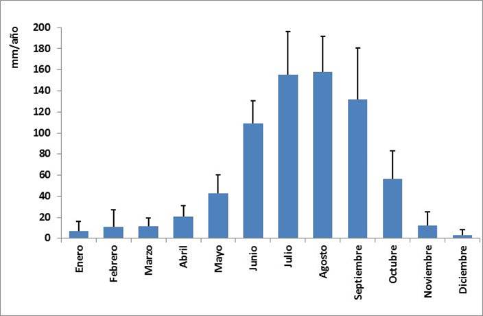 GRÁFICA 1: PRECIPITACIÓN PROMEDIO MENSUAL EN LA CIUDAD DE MÉXICO (milimetros por año)