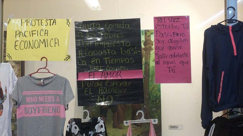 Cartel de protesta económica, estación Salto del agua, correspondencia con la línea 1 y 8. 2 de junio de 2021. Fotografía: Flor Daniela Estrada