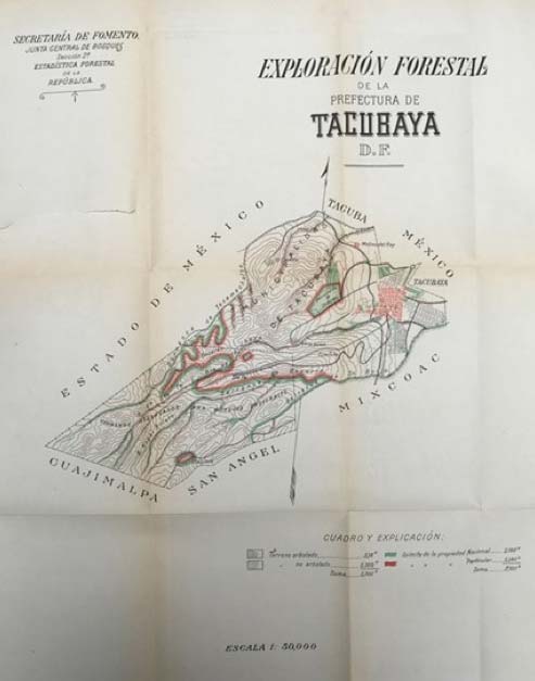 Fuente: Exploración Forestal de la Prefectura de Tacubaya D.F. Escala 1: 50,000 en Revista Forestal Mexicana, México, Año I, Número 5, noviembre de 1909