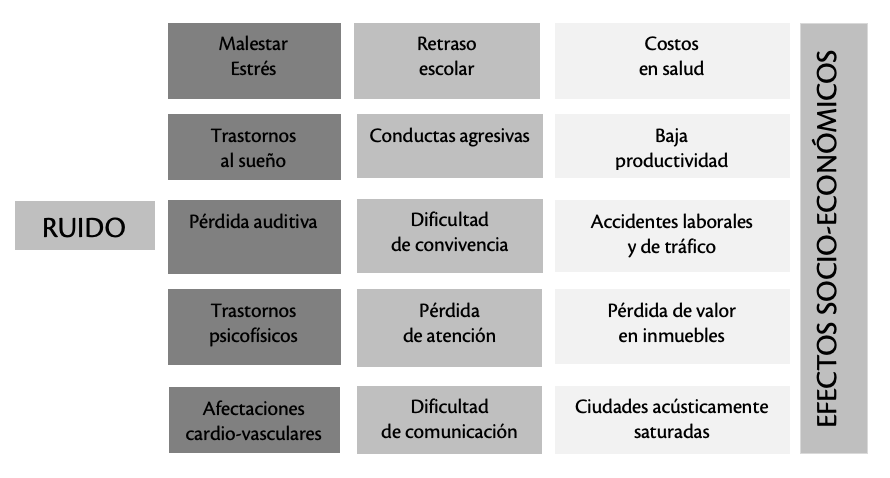 De los múltiples agentes que contribuyen al deterioro ambiental y que afectan directamente a los habitantes, el ruido es uno que representa uno de los factores más perceptibles por los habitantes. Éste se incrementa de manera constante a nivel urbano, ocasionado por la expansión demográfica, los medios de producción y las costumbres de los habitantes, entre otros factores. La forma en que estamos construyendo las ciudades nos está enfermando y a esto se suman infinidad de problemas urbanos que parecen no tener una solución sencilla