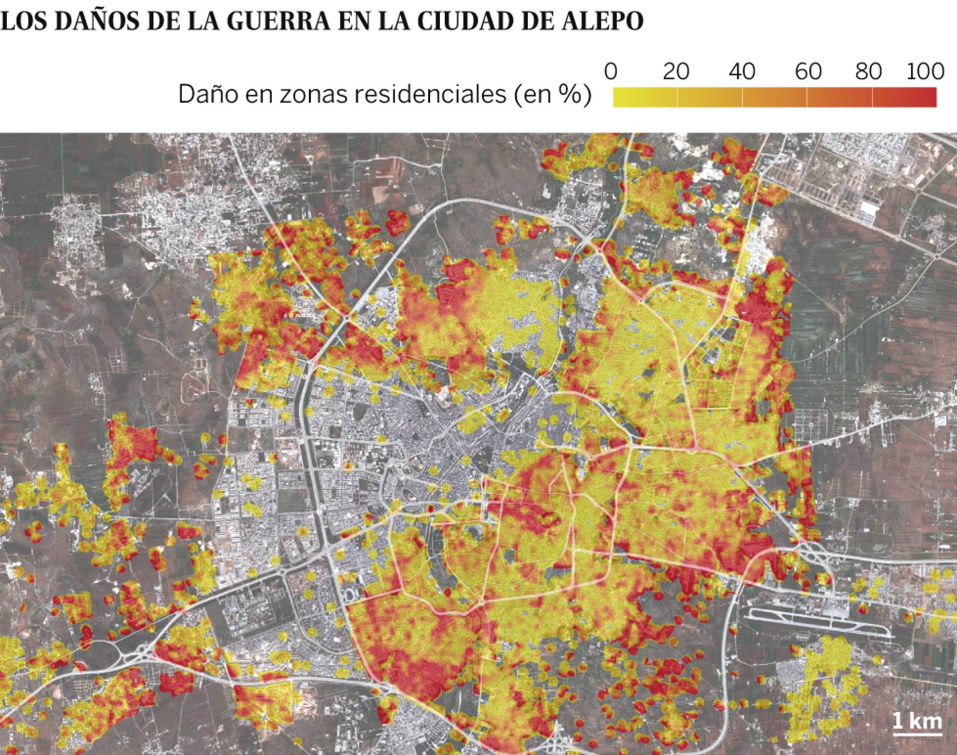 La dimensión de la destrucción de estas ciudades muchas veces sólo se ha podido documentar mucho tiempo después de acabada una batalla o el conflicto armado. Sin embargo, hoy la guerra civil en Siria, entre el régimen de Bachar al-Ásad y los rebeldes sirios, ha traído una novedad macabra. Durante la reciente batalla por la Alepo, la segunda ciudad en importancia de Siria, se ha mediatizado enormemente su destrucción. Probablemente producto de la enorme politización y tensión entre las potencias internacionales involucradas en el conflicto: Estados Unidos y Rusia. Esta mediatización ha llevado a documentar no sólo su reducción de población, los miles de fallecidos o la perdida de patrimonio historio y cultural; sino lo extenso del daño a la ciudad para ganar su control.