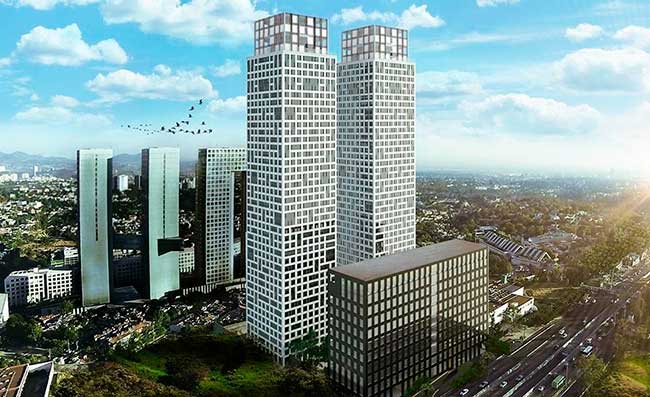 Desarrollo Agwa Bosque, al fondo Torre Arcos Bosques I, y en medio la cooperativa Palo Alto
