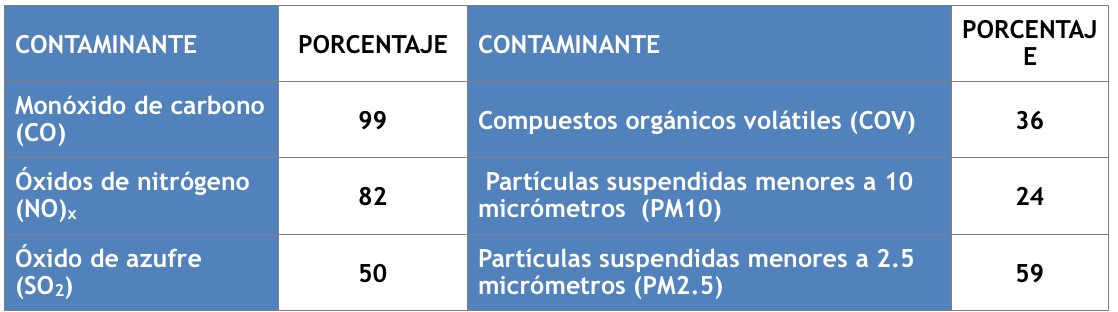 TABLA 1: CONTRIBUCIÓN PORCENTUAL DE LAS EMISIONES VEHICULARES AL TOTAL DE EMISIONES3