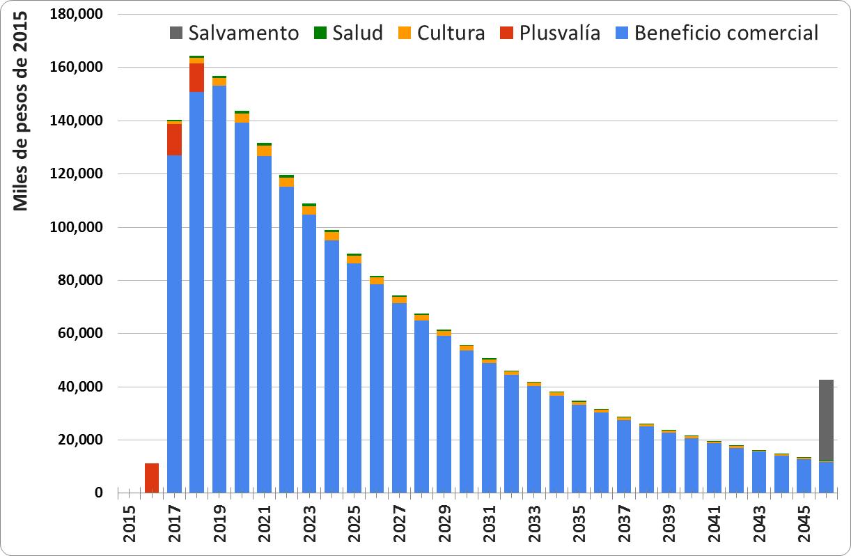 Figura 1: Flujo de beneficios en el corredor Chapultepec (miles de pesos de 2015)