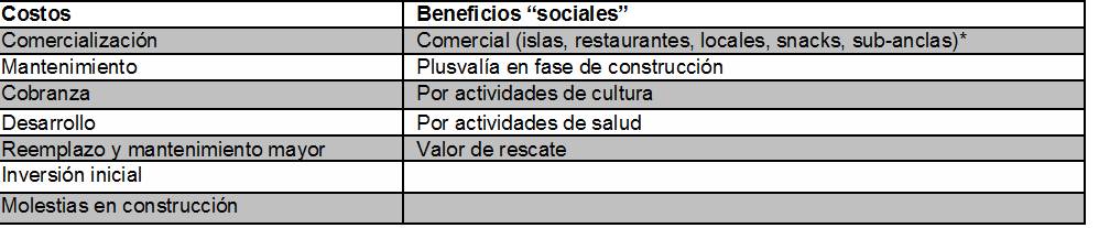 Costos de riesgo asociados a que no se cumpla el porcentaje de ocupación comercial contemplado durante la operación del Corredor. ¿Qué pasa si no se realiza la ganancia comercial que, como se ve, representa el mayor componente de ingresos en la evaluación? ¿Se asume que los contribuyentes del DF funcionan como prestamistas de última instancia en caso de rescate?
