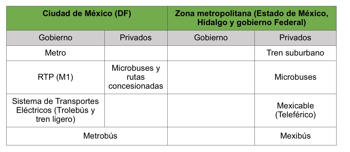 TABLA 1: TRANSPORTE PÚBLICO EN LA ZONA METROPOLITANA DEL VALLE DE MÉXICO
