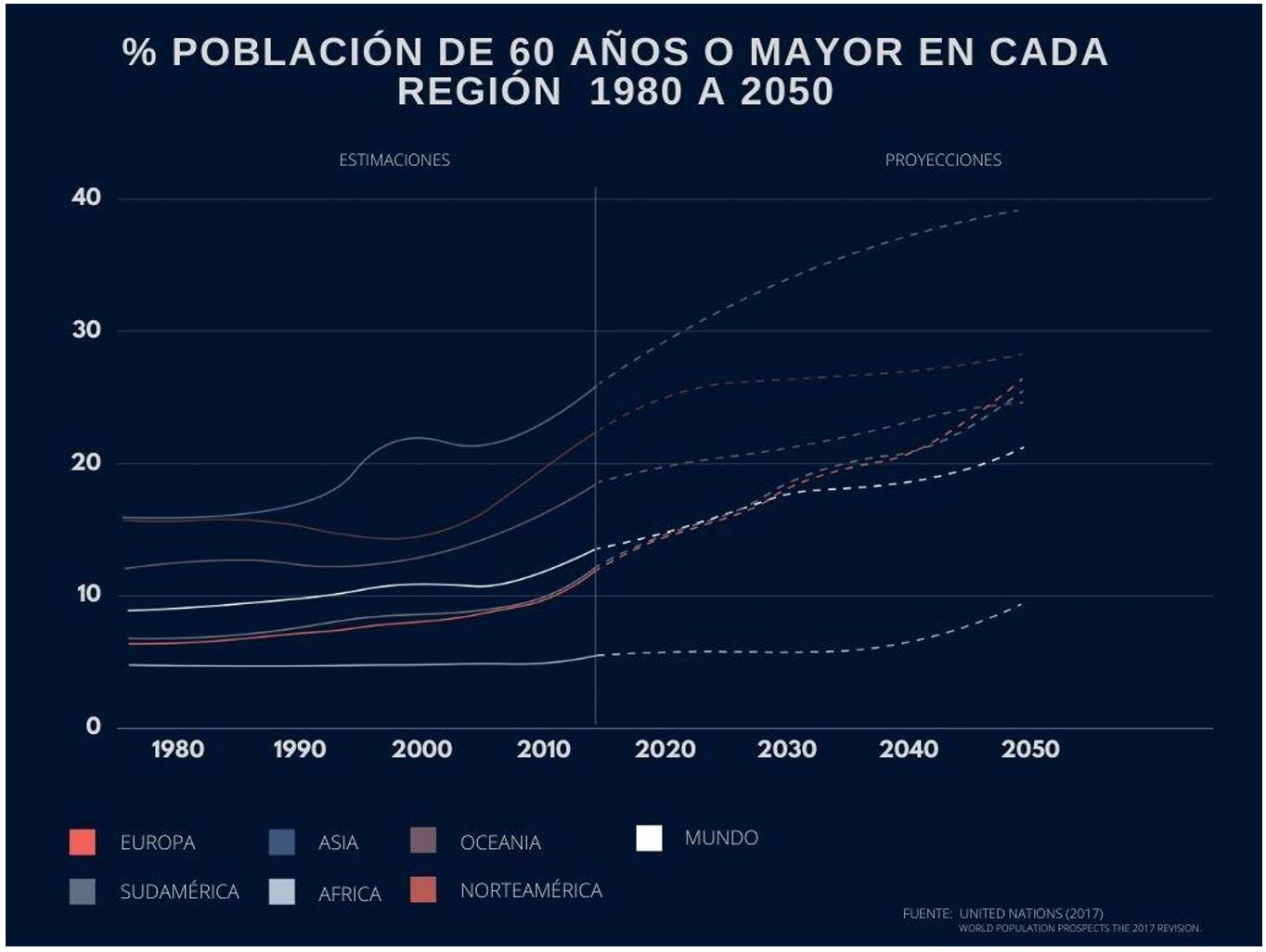 Actualmente, diversas tendencias demográficas se perfilan también como presiones ejercidas sobre la vivienda. La primera relacionada con una mayor expectativa de vida: vivimos más, morimos más viejos. De acuerdo con el Departamento de Asuntos Económicos y Sociales de Naciones Unidas, en 2050 las personas mayores de 60 años pasarán de 1000 a 2 100 000 millones. Las personas mayores de ochenta se triplicarán de 137 a 425 millones; el 22 % de la población mundial será mayor de 60 años y en lugares como Estados Unidos, Alemania y Japón, una de cada tres personas será mayor a sesenta años. Es decir, en unos treinta años, un buen porcentaje de la población mundial pertenecerá a la tercera edad, lo que implicará exigencias nunca vistas de accesibilidad, salud, distribución de recursos, cuidado y servicios.