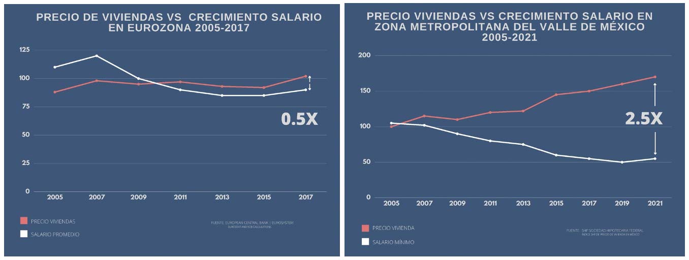Encontrar un lugar para vivir en cualquier ciudad del mundo es cada vez más complicado, pero especialmente en Ciudad de México. Hoy en día, el costo de vivienda sube más rápido que los salarios promedio. De acuerdo con un estudio de Máximo Ernesto Jaramillo-Molina, la vivienda promedio en México ahora es 98 % más cara respecto de los salarios promedio comparado con 2005. Lo anterior se suma a la poca oferta de vivienda asequible y a los modelos de vivienda social poco adaptados a las necesidades actuales.
