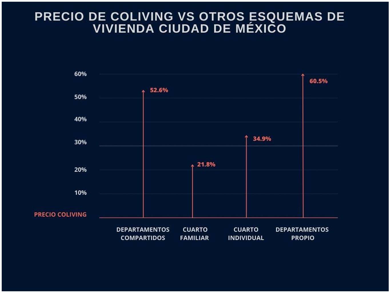 Entre los antecedentes como modelo de negocio podemos citar la vivienda en renta, los clubes de renta y la operación de cadenas chicas de hotel. Hoy en día, poner en renta una propiedad convencional en la Ciudad de México deja un rendimiento anual de entre el 5 y el 5.5 %; poner en renta un coliving significa rendimientos de hasta el 12 % anuales.